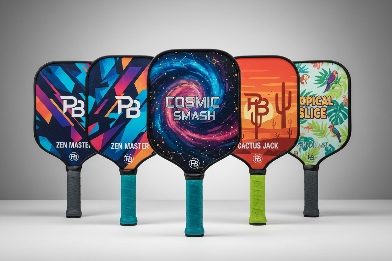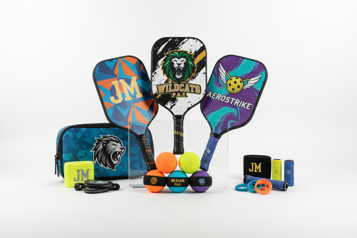 These are examples of projects we’ve designed and produced for teams, tournaments, schools, and brands. From high-performance pickleball paddles to apparel and event merchandise, everything you see is fully customizable.